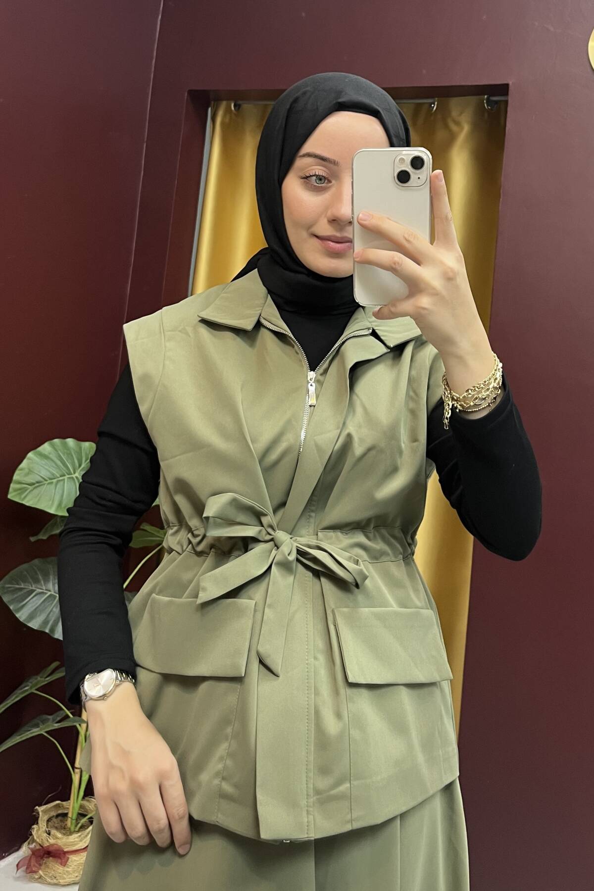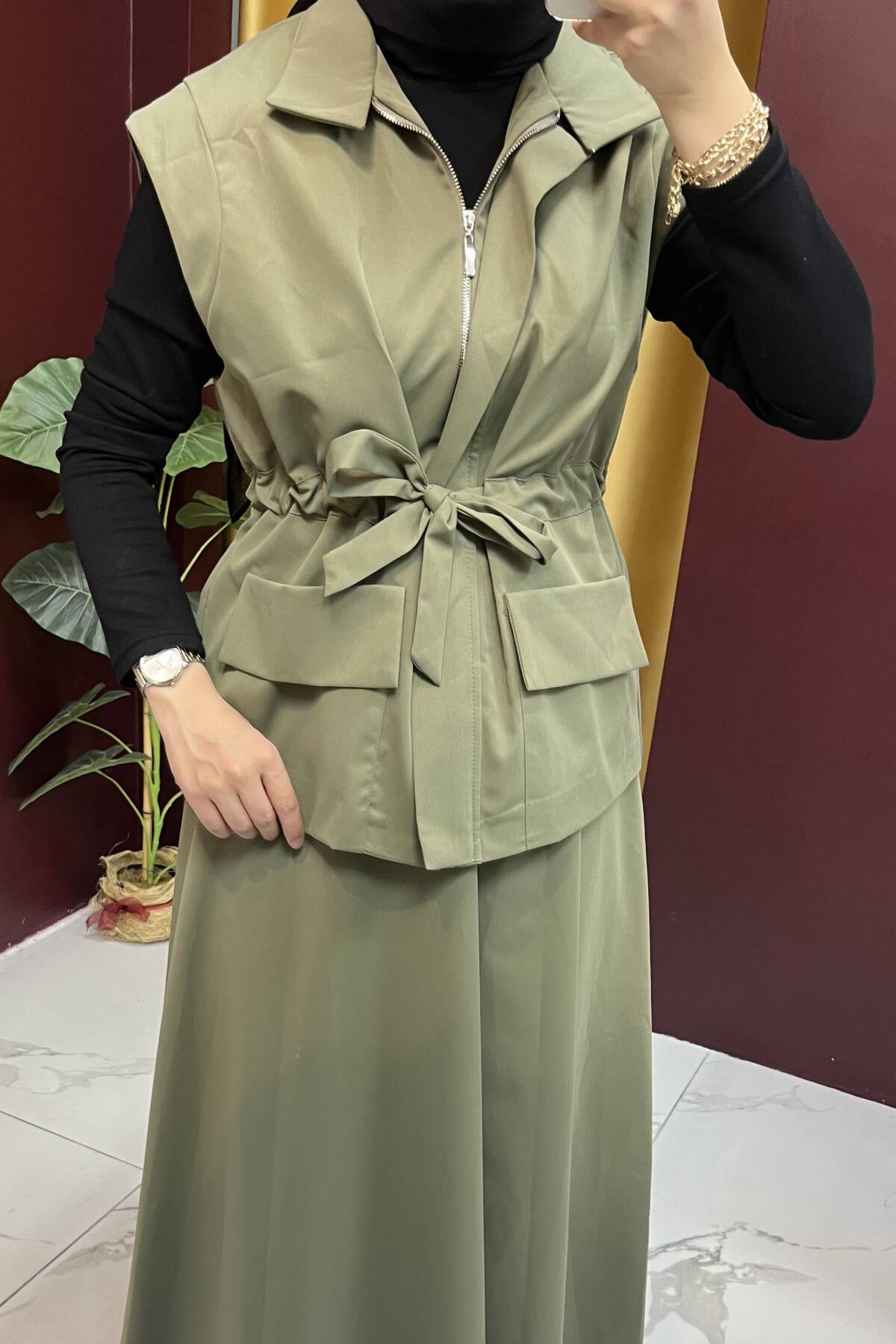 Yelek: Ürün boyu 64 cm, omuz 96 cm, göğüs 108 cm'dir.