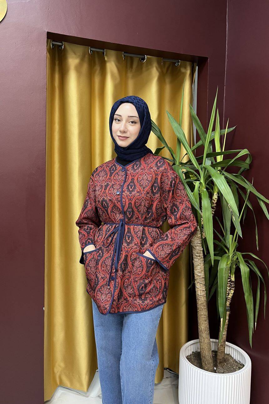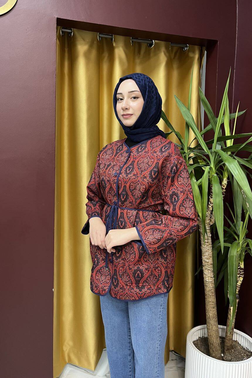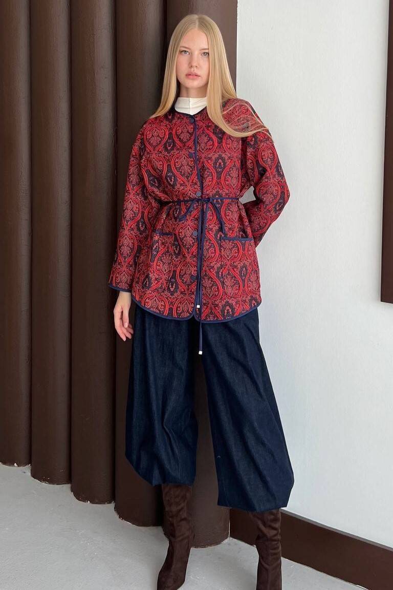 Desen detaylarıyla göz alıcı, şık ve zamansız bir görünüm sunan bu ceket, günlük kombinlerinize sofistike bir dokunuş katıyor. Yumuşak dokulu kumaşı ve bele oturan kuşak detayı sayesinde hem rahat hem de zarif bir duruş sağlar. Jean, etek veya klasik pantolonlarla kolayca kombinlenebilir.
