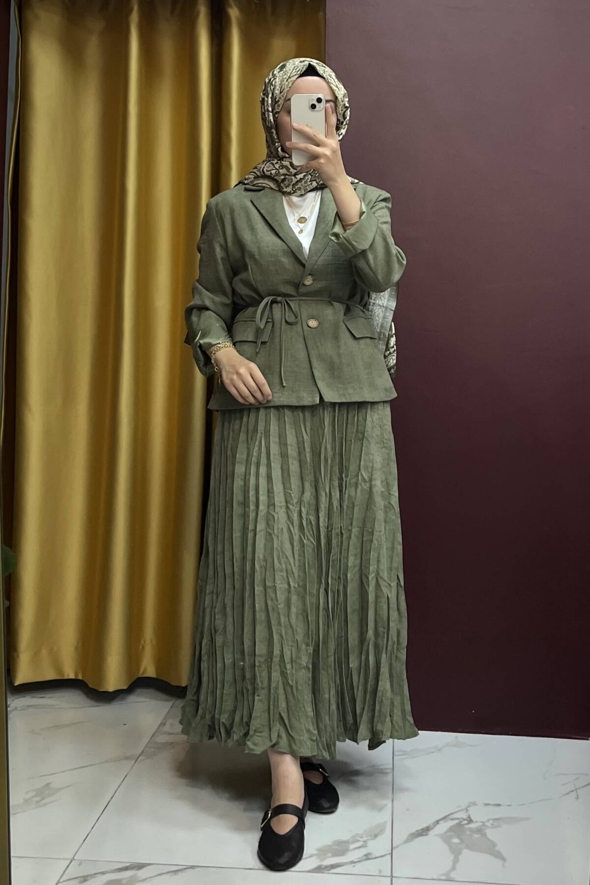 Etek: Ürün boyu 95 cm, bel 72 cm, basen 100 cm'dir.