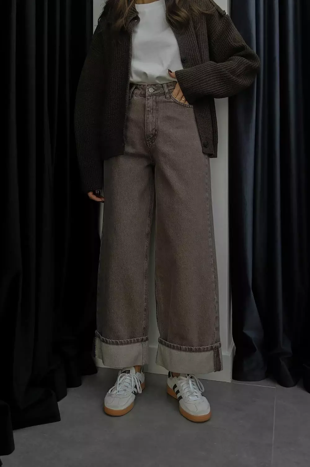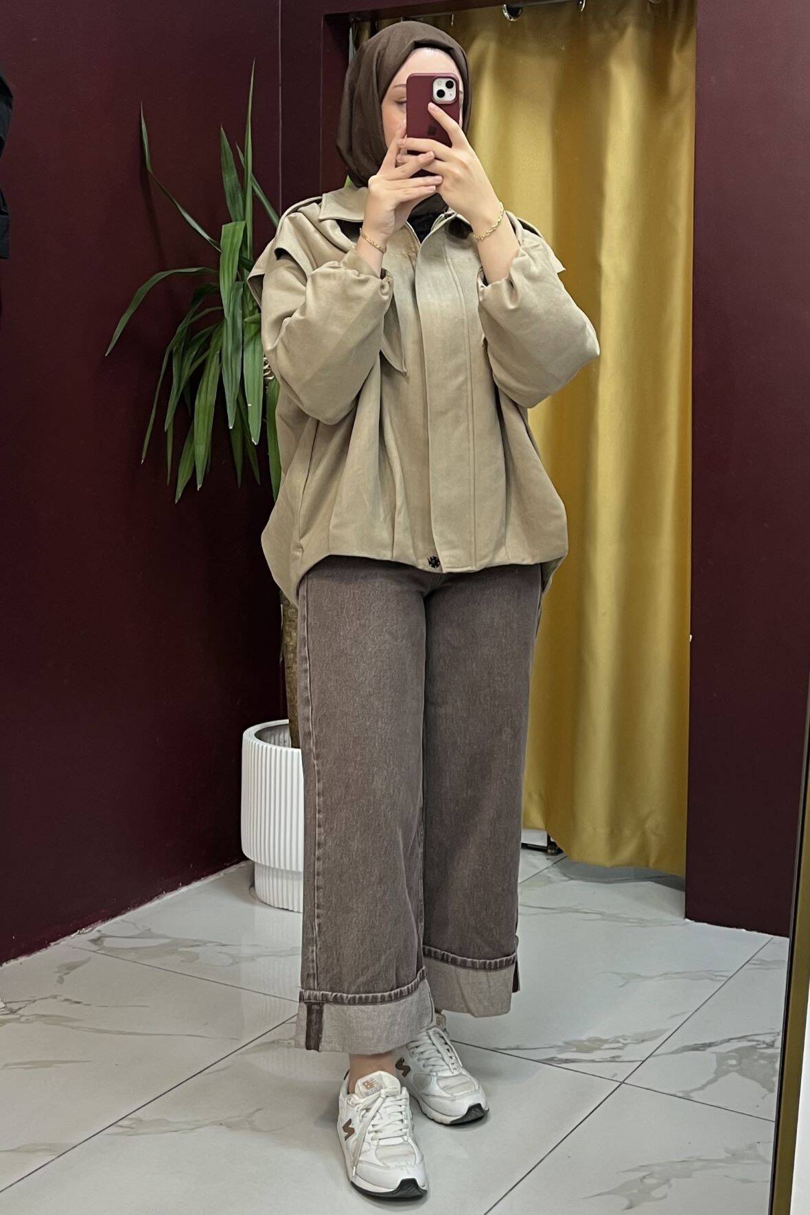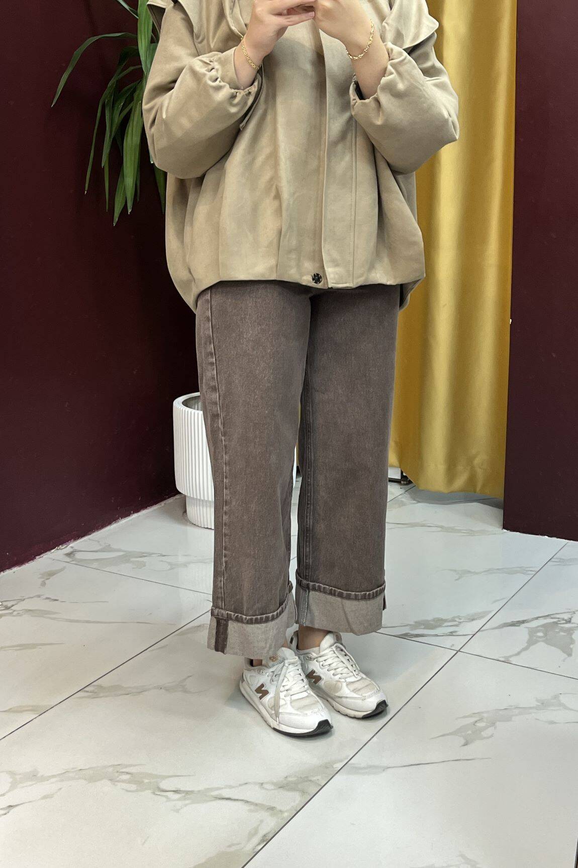 YÜKSEK BEL, ÖNÜ FERMUARLI VE METAL DÜĞMELİ, BEŞ CEPLİ, PAÇASI KATLAMA DETAYLI JEAN
