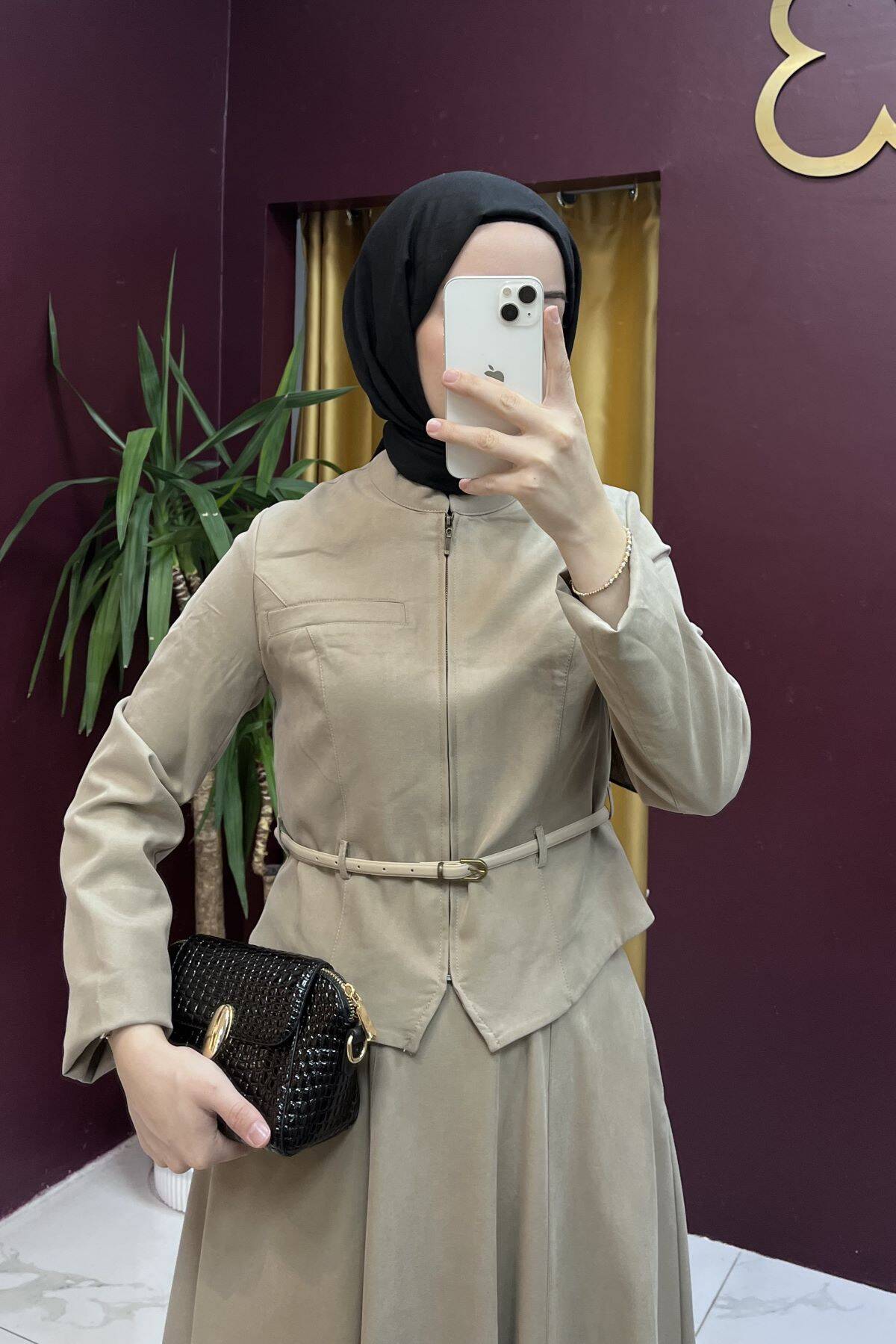 Dik duruşlu yakası, minimal dikiş geçişleri ve kaliteli işçiliğiyle öne çıkan model; tesettür giyiminde hem sade hem de güçlü bir tarz arayanlar için ideal.