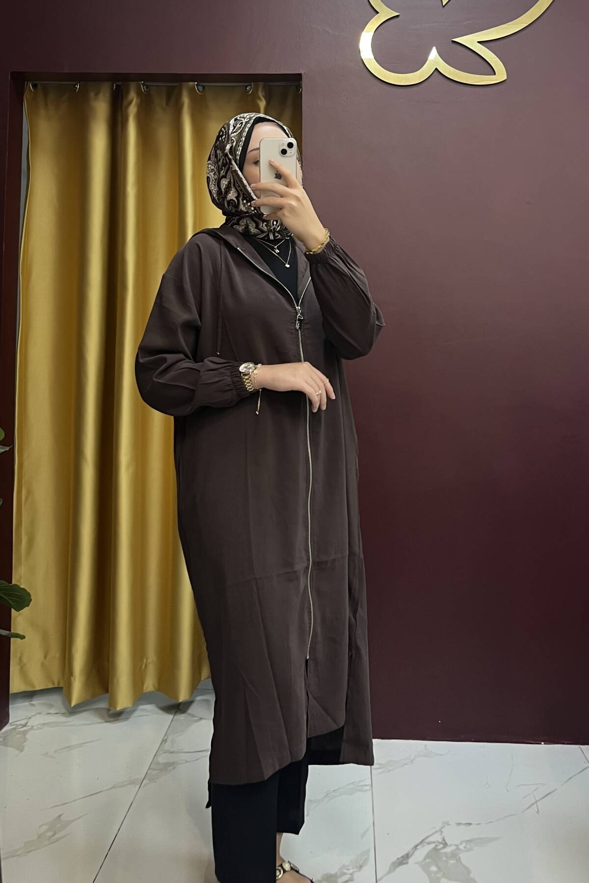 Modal kumaştır, şapkalıdır.